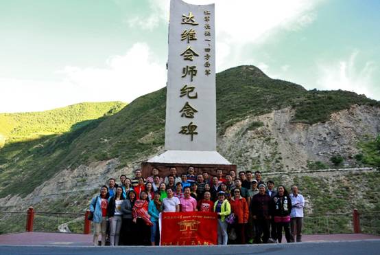 25日早餐后,全体学员来到82年前烽火硝烟的“飞夺泸定桥”现场。这里记录了红军长征中的一次重要历史事件。1935年5月28日,中央红军在暴风骤雨下,沿着崎岖陡峭的山路上跑步前进,一昼夜奔袭竟达120公里,终于在凌晨29日凌晨6时许,突击队员沿着枪林弹雨和火墙密布的铁索踩着铁链夺下桥头,并与左岸部队合围占领了泸定桥。每位学员都亲自从桥面走过,如今的泸定桥虽已不复当年的惊险,但为了铭记历史、教育后人,桥面上仍然只铺设了五块木板,走到江心,俯看脚下湍急的大渡河水,感受铁链的震颤的节奏,让人不能不感佩红军当年的英勇顽强。随后,学员们乘大巴行驶250公里,途经红军长征徒步翻越的第一座大雪山——夹金山,来到阿坝藏族羌族自治州红军达维会师旧址,瞻仰达维会师纪念碑并合影留念。1935年6月中旬,红一方面军从四川宝兴县进入阿坝州,与红四方面军在此会师,其后横穿阿坝州出境,历时3个月。一天的行程非常紧凑,后续的故事更加精彩,我们将沿着红军长征的路线,继续前进。
