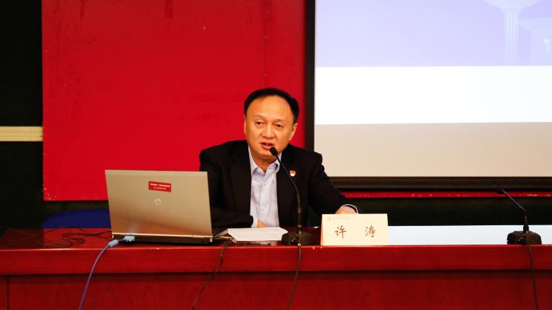 许涛书记着重从“学习重要论述、自觉增强领导班子建设意识”,“完善能力素质、不断提高管理服务效能水平”,“注重制度建设、全面提升二级单位治理能力”三个部分展开深入浅出的讲解,并结合学校近年来的工作亮点和经验案例,结合身边的榜样和事迹,从大学治理和制度建设层面,对贯彻落实十九届四中、五中全会精神提出了具体要求。
