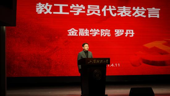 学生积极分子学员代表季嘉豪、预备党员学员代表19级硕博班的黄迎、发展对象学员代表18级公共经济与管理学院的毕龙飞、教师代表金融学院的罗丹老师分别代表讲话。他们以自身经历为载体,讲述了自己的入党原因与价值观,呼吁同学们提高自己的积极性,并祝贺本次开业典礼圆满成功。