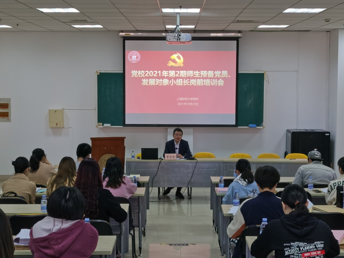 10月23日上午,上海财经大学党校2021年第2期师生发展对象、预备党员培训班岗前培训会在行政大楼阶梯教室举行。党校副校长、党委组织部副部长曹东勃,党校侯晓萍、孔媛,以及来自各院系共47位师生发展对象、预备党员组长参加了本次活动。
