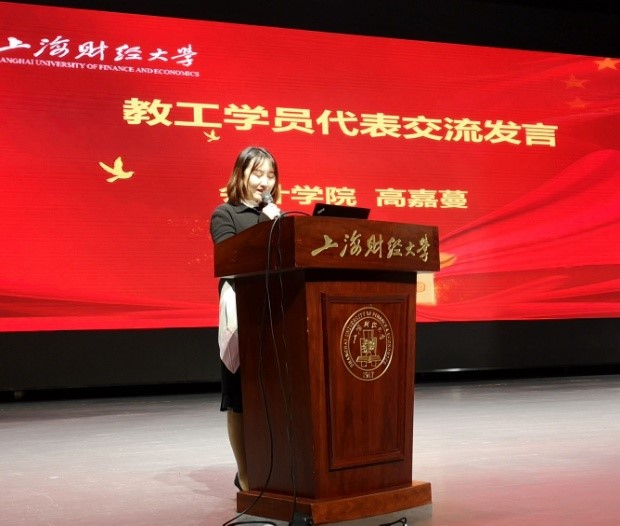 接下来,三位学员代表作交流发言。商学院的发展对象鲁骏同学讲述了自己成为一名发展对象时的激动心情,因为这让他离党组织更近一步,这一步不仅仅是激动,也是一份沉甸甸的责任。他表示要对照党章,反观自身存在的缺点和不足,争取得到进一步的提高。统计与管理学院的预备党员祝福同学表示,将发挥共产党员的先锋模范作用,本着有一分耕耘,才有一分收获的学习精神,坚实自己的文化基础,提高为人民服务的本领。会计学院学院的高嘉蔓老师表示,要发挥好教师的责任和使命,进一步明确自己的职责,并将在今后的教学、科研与管理工作中继续不忘初心、砥砺前行。