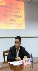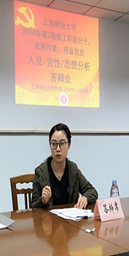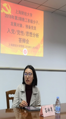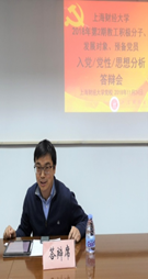 11月24日上午9时,上海财经大学“2018年第2期教工入党积极分子、发展对象、预备党员思想/党性分析答辩会”在行政楼二楼北会议室举行。此次答辩共有16位学员参加。中国人民解放军空军政治学院唐志龙教授、我校财经研究所总支书记杨培雷教授应邀作为评委出席答辩会。
