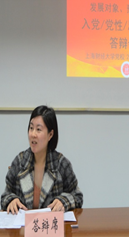 答辩程序主要分为三个环节,一是自我思想分析,二是根据抽签的主观题如实作答,三是评委提问并评议。学员的自我思想分析都很接地气,贴近实际、贴近工作,而评委的提问与点评也是亮点迭出。比如经济学院刘子熙老师在思想汇报提及曾在德国留学的经历,回国入校后就向学院党组织递交了入党申请书,评议专家在听取她的汇报后,请她谈谈德国“社会市场经济体制”与中国“社会主义市场经济体制”有何不同,她言简意赅的指出“主义”,即中国更强调中国共产党的领导,为人民谋福祉。商学院王天洁老师抽签的题目是“我国为什么要举办国际进口博览会?习主席在进博会开幕式上的讲话传递出哪些信息?”,巧合的是她作为志愿者有幸参与了进博会的服务工作,与大家分享了亲历进博会的感受和体会,我校的共产党员、预备党员志愿者们在进博会期间成立了临时党支部,充分发挥党员的先锋模范作用。赢得了评议专家的赞誉。