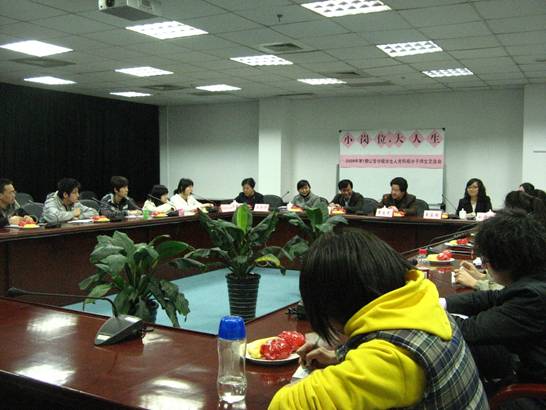 本次以研讨“小岗位 大人生”为主题,由此,在座的师生员工展开了热烈讨论。党校常务副校长章忠民教授、公管学院彭剑斌副书记、后勤管理处刘婷婷老师、学院王彩华老师、党校吴家瑞老师等先后讲话。章忠民老师亲切生动的讲话,给大家很大激励。首先,他肯定本题很贴切,也很符合我校校风。他希望同学以感恩、谦逊的态度,以今天这一活动平台为起点,根据党和人民的要求和我校发展的需要,不断努力发展自己。章老师要求大家搞好自身的时间管理、情绪管理和知识管理,走可持续发展道路,在服务社会,报效国家的同时分享改革开放的发展成果和喜悦。王彩华老师亲切的谈到自己来到财大的感到了节奏很快,压力也大了,同时也看到不少学生亦背负着较大的压力。因此,她给同学们谈了如何面对压力;一是自我澄清,二是躲避不必要的矛盾,三是对压力说不,四是修改和制定计划,五是活在当下,六是构建心理支持系统。后勤管理处的刘婷婷老师通过自己的工作心得,概括出做一个对社会、学校、家庭有用的人的基本要求,即提高服务意识,有责任感、爱岗敬业,独立意识。党校的吴家瑞老师随后做出了发言,她通过自己亲身体会谈到要尽快进入角色,学会怎样把本职工作做到位?怎样通过与服务对象的深入交流更加贴近师生的要求?怎样保持正面、快乐、积极的态度,真诚面对生活工作。楼长项美丽阿姨通过小年夜女生宿舍楼水管爆裂及一些生活上的细节,谈到了后勤工作人员通过勤恳的工作所获得的劳动成果和喜悦,并感谢日常工作中学生的配合。最后,彭剑斌书记作了总结性发言,他谈到自己对这个主题很有感受,认为它创意好。他指出既要认真行动又要善于思考人生,同时他认为党校培训应该是长远的思考,是文化的积淀。他强调,每位同学应发自内心的去做好每件事,尊重每一个岗位,生活中不要小看任何岗位,正是通过“小岗位”上无数劳动者的默默无闻的付出,保证了学校工作,保障了同学们学习生活正常有序运行。