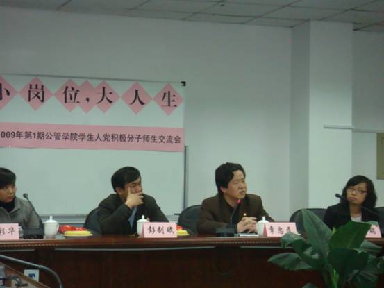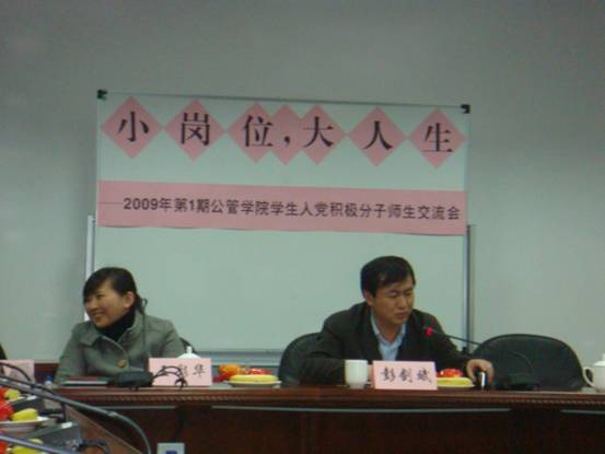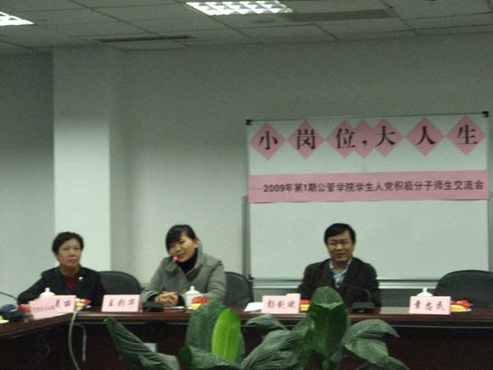2009年4月1日,我校党校公管学院分党校召开了“2009年第一期党校公管学院分党校学生入党积极分子培训班师生交流会”。