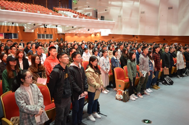 典礼伊始,全体起立奏唱国歌。首先,章忠民教授祝贺全体学员站在新的起点上并向党组织又靠拢了一步。他指出,学员们仍需继续反思自我,解决为什么要入党的问题,将入党动机由朴素、原始、初级的经过升华变得纯粹,上升为为他人、为社会、为国家服务,甚至像马克思一样为全人类的解放而奋斗。其次,他强调全体学员须坚定共产主义理想信念,利用信念的力量升华自己,应该学习前辈们身上的精神和品质,培养无私奉献的精神和“先天下之忧而忧,后天下之乐而乐”的家国情怀,构建强大的内心世界,汲取知识、锻炼本领,学以致用,在以后的学习工作中克服困难实现人生目标,这样才能为早日实现中华民族伟大复兴的中国梦添砖加瓦。最后,章老师要求学员们严格遵守党校学习纪律,学好每一堂理论课,多读书,读好书,积极参加党校实践活动和学院开展的一系列活动,充分运用好学习平台全方位培训自己,为未来职业生涯、党员生涯打下坚实的基础。