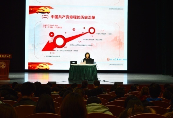 开学典礼在庄严的国际歌中落幕,之后开展教学培训环节。今年正值新中国成立70周年,31日上午,章忠民教授率先为全体学员作“新中国成立70年的奋斗与辉煌”专题报告。原上海市委党校第四分校党建研究处处长王蔚莲研究员为学员们作“学习新党章 坚定理想信念”专题报告。