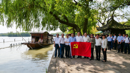 上午,全体与会人员集体参观了南湖革命纪念馆。98年前,中国共产党的先驱们从上海转移到南湖的红船上,中国共产党第一次代表大会在这里胜利闭幕,通过了中国共产党第一个纲领和决议,选举产生了党的中央领导机构,庄严宣告了中国共产党的正式成立,“这是开天辟地的大事变”。