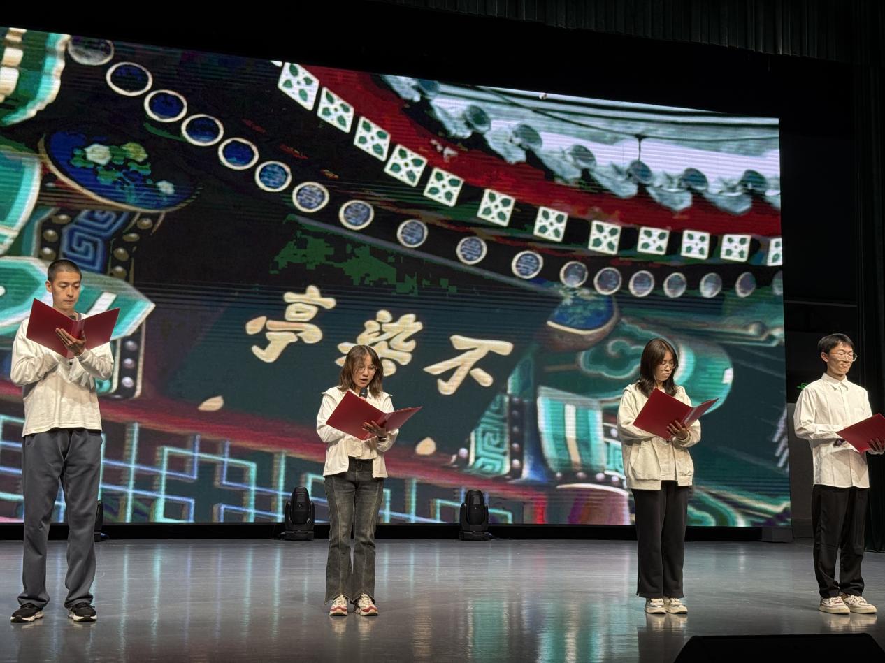 第二个教学环节《永远难忘的怀念》,运用多种表演形式,展现周总理“鞠躬尽瘁,死而后已”的公仆情怀。情景短剧生动再现总理工作与生活中的感人场景,演员们精彩演绎让师生们身临其境;故事讲述者分享总理鲜为人知却令人动容的故事,从细微之处展现总理的高尚品格;诗歌朗诵环节,上财学子用饱含深情诵读经典诗篇,用激昂文字和澎湃情感,抒发对总理的深切缅怀和无限敬意。