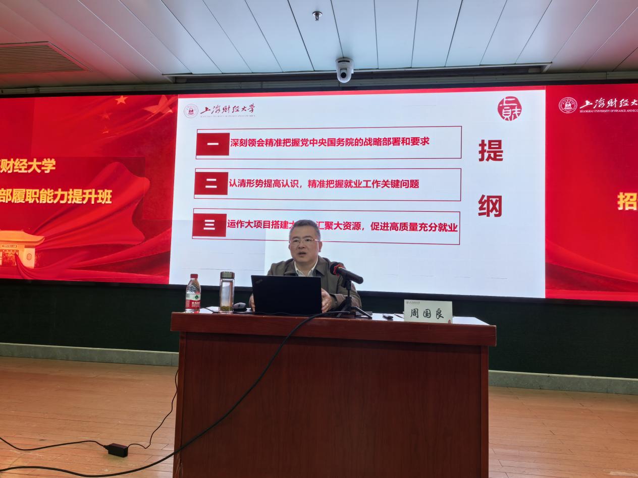 校党委副书记周国良以“深化产教融合新路径,赋能高质量就业新篇章”为题开展专题讲座,强调全体干部要深刻领会、精准把握党中央、国务院的战略部署和要求,强化针对高校毕业生的就业服务和观念引导。面对产业变革和战略转型的挑战,财经类高校亟待认清形势、提高认识,尤其在科技革命与人工智能产业蓬勃发展的当下,需精准把握就业工作关键问题,积极面对结构性矛盾,通过针对性举措化解财经类院校当前就业难点。要以构建数智新财经为抓手,完善人才培养适配机制,构建“招生—培养—就业”联动机制,切实促进毕业生高质量充分就业。