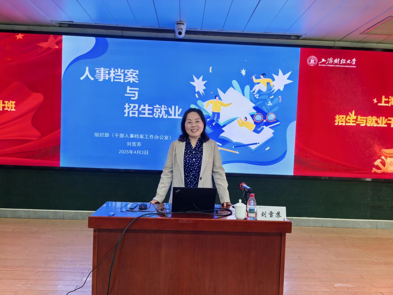 学校干部人事档案工作办公室主任刘雪苏,围绕人事档案知识及其在招生就业工作中的重要性展开专题培训,明确档案审核原则,阐释学生档案在就业领域的重要作用,进一步强调学生档案的重要意义。