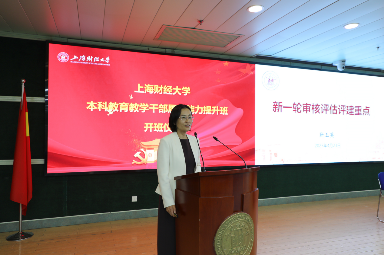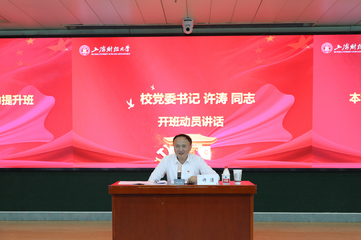 在动员讲话环节,许涛书记认为举办本次本科教育教学干部履职能力提升班恰逢其时,希望学员们高度重视和珍惜本次培训机会,以认真务实的态度投入学习,在学思践悟中增长本领,切实将培训所学转化为推进本科教育教学改革的实际行动。从国家层面看,教育是国之大计、党之大计,审核评估是教育部对高校人才培养质量进行全面检验的重要手段,是推动高校内涵式发展的关键举措。作为一类参评高校,我们肩负着更高的使命与责任。新一轮审核评估既是对我校办学水平的全面检验,更是推动高质量发展的重大机遇。许书记回顾了上一次审核评估中发现的典型案例,为学员们开展警示教育,希望大家高度重视本次审核评估工作,参评过程和结果将纳入学校相关年终绩效考评。希望大家以“同题共答”的担当,学以致用,高质量的完成各项评估工作,将评估要求转化为育人实效,为建设教育强国贡献上财的智慧和力量。