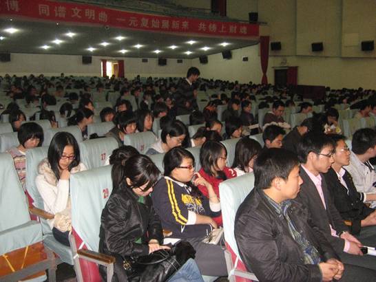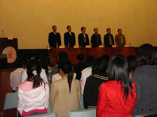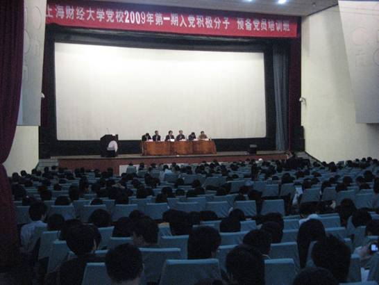 4月14日, 党校09年第一期师生入党积极分子、预备党员结业典礼在校大礼堂举行,党校常务副校长章忠民教授主持了结业典礼。校组织部陈宏部长、统战部毛荣生部长、学生处章益国副处长、信息管理与工程学院周峰书记、法学院李清伟书记和866名师生学员参加了此次结业典礼。典礼第一项仪程,全体肃立,奏唱中华人民共和国国歌;典礼的第二项仪程,部门领导、院系领导致辞和学员代表发言。陈宏部长、毛荣生部长和李清伟书记分别进行了讲话,陈宏部长强调学员们要贯彻党校教育的要求,坚持信念教育、灵魂教育,追求志存高远、脚踏实地的精神境界,他还提出学员们要掌握成功的三要素:雄心、毅力和知识能力, 做好社会主义接班人。接着毛荣生部长和李清伟书记分别就自己的个人入党经历结合党校学员的学习情况,指出了此次结业典礼是一次光荣的经历和仪式,希望同学们能够作四有新人、坚定自己的理想信念,争取做一名优秀的共产党员。公管学院、会计学院、法学院、外语系的四位同学分别代表积极分子和预备党员进行了热情洋溢的发言。典礼第三项仪程,党校常务副校长章忠民教授对本期党训班活动作总结,他首先热烈祝贺学员们光荣结业,为同学们在坚定信念、提高理论修养方面取得的进步和收获而倍感高兴。同时,他要求学员们要以此次培训为平台和起点,规划好自己今后的生活、学习和工作,做好时间管理、知识管理和情绪管理,争取做一名优秀的共产党员。典礼的最后一项仪程,由部门领导、院系领导向学员们颁发了结业证书、优秀学员荣誉证书等奖项。最后,结业典礼在慷慨激昂的国际歌声中圆满的拉下了帷幕。