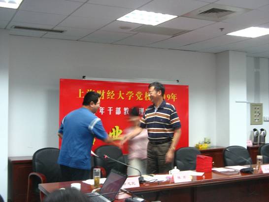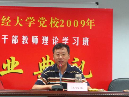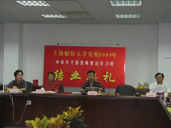 在校党委亲切关怀和指导下,上海财经大学党校2009年中青年干部理论学习班顺利结业。9月25日上午,结业典礼在校行政楼三楼会议室隆重举行。校党委马钦荣书记出席结业典礼并发表重要讲话,组织陈宏部长、统战毛荣生部长、经济学院程霖书记、统计与管理学院豆建民书记等部门及院系领导出席了典礼,党校常务副校长章忠民主持结业典礼。学员代表于洪老师向领导汇报了本期党校学习情况,通过《在党校的熔炉里锤炼成长》PPT演示,用生动的画面和精彩的解说汇报了在三个多月的党校学习中所取得的情况,表达了全体学员们在今后将继续学习、不断努力工作的热切心声。
