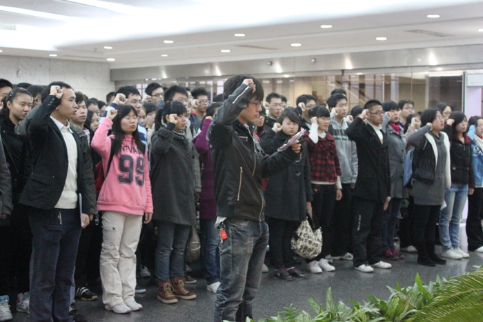 学员们面向党旗,举起手来庄严宣誓