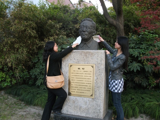 会计学院分党校负责人赵果老师和统计与管理学院助理辅导员张滟老师带领学员代表为“向大师致敬活动”做准备工作