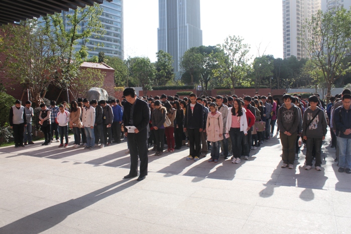 全体参观学员在党校领导的带领下缅怀参加中共四大会议的代表先烈