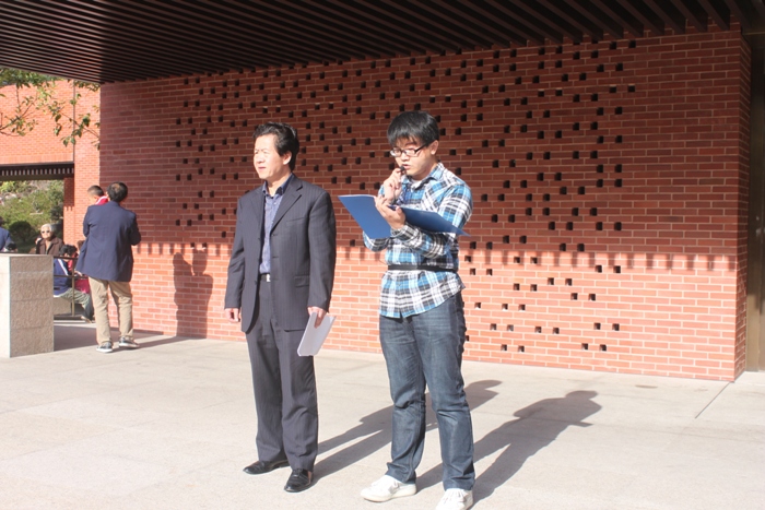 在中共四大纪念馆前,全体学员举行参观缅怀仪式