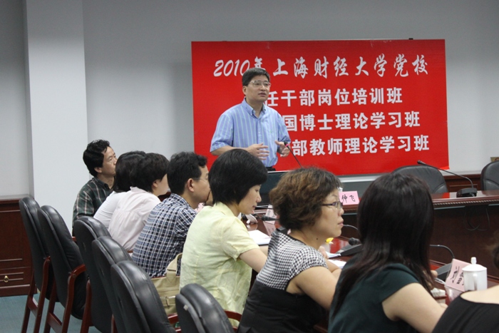 2010年7月2日午,校周仲飞副校长为党校新干班、海归班和中青班学员作《以高水平师资队伍建设为关键,进一步推动人才强校战略的实施》专题报告