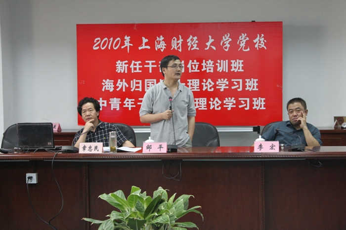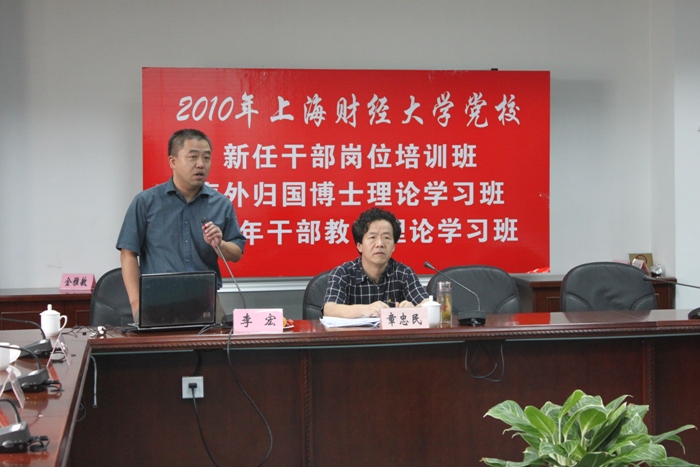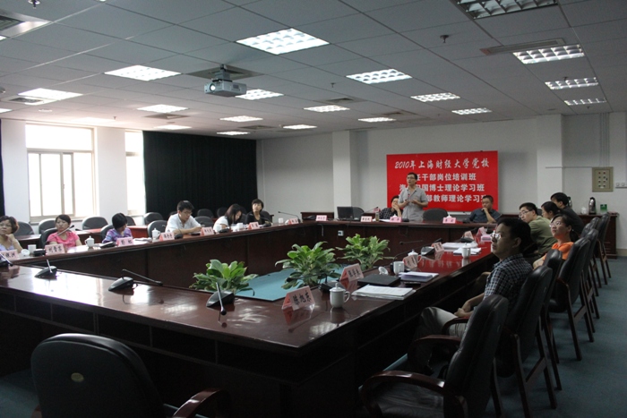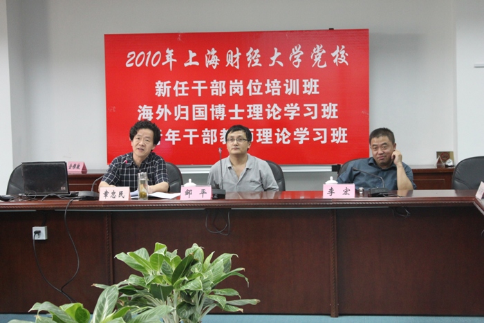 2010年7月6日下午,校研究生部邹平副主任、中外合作办公室李宏主任为党校海归班和中青班学员作《上海财经大学国际合作与交流》专题讨论