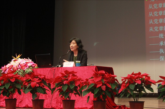 上海市教卫党校王蔚莲研究员为学员们做《学习十七大党章 坚定理想信念》