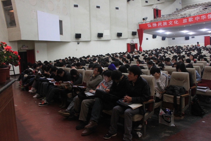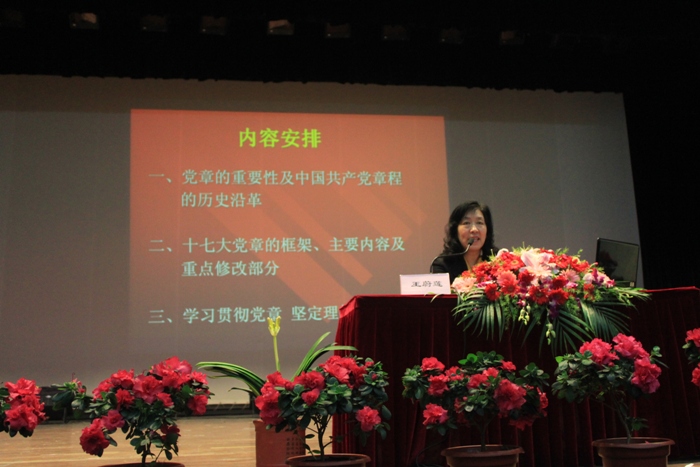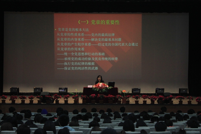2012年4月14日上午,党校举行2012年第1期党训班第三讲讲座《学习共产党党章 坚定理想信念》