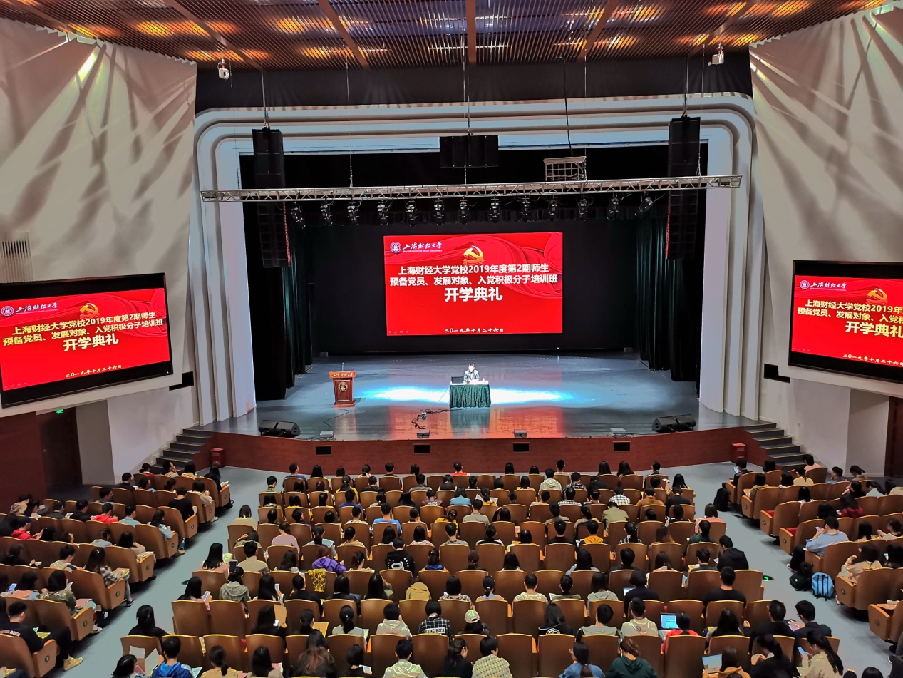 10月26日上午,上海财经大学党校2019年第2期师生发展对象、预备党员培训班开学典礼在国定路艺术中心举办,全体师生预备党员、发展对象参加了本次开学典礼。典礼由党校副校长、组织部副部长曹东勃主持。