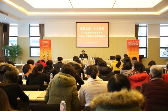 1月10日下午,上海财经大学百年校庆百场公益讲座第二站,来到松江区广富林街道,由我校特聘教授、著名经济学家程恩富为街道的机关、党员干部、群众等近百人作题为“成家立业,个人发展—马克思和你息息相关”的专题讲座。讲座由广富林街道办事处副主任孙长城主持。